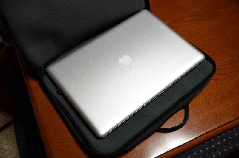 内側?のMacBook Pro 15インチよりふたまわりほど大きめ。ちょっとゆとりあり。